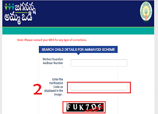 To Check Status Of Ammavodi You Need To Enter Aadhaar Number of Mother Or Guardian Only. As Shown In The Below Picture Number 1
