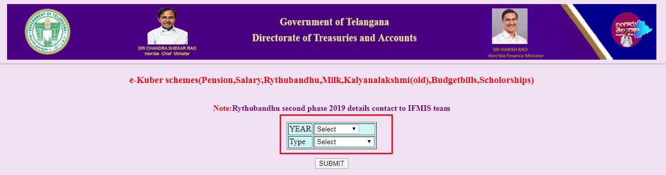 2) This will take you to the Telangana Treasuries website here you can find different services provided by KCR Governement.