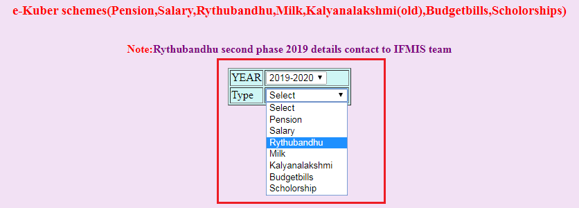 3) From the menu bar Select E-Kuber option , you will see different options from which you need to select scheme wise report.